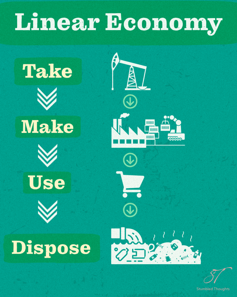 Since the industrial revolution, we have been using the linear economy model where we “take-make-use-dispose”. In other words, a linear economy takes raw natural resources, transforms them into products and then these products are disposed of after just a few uses.